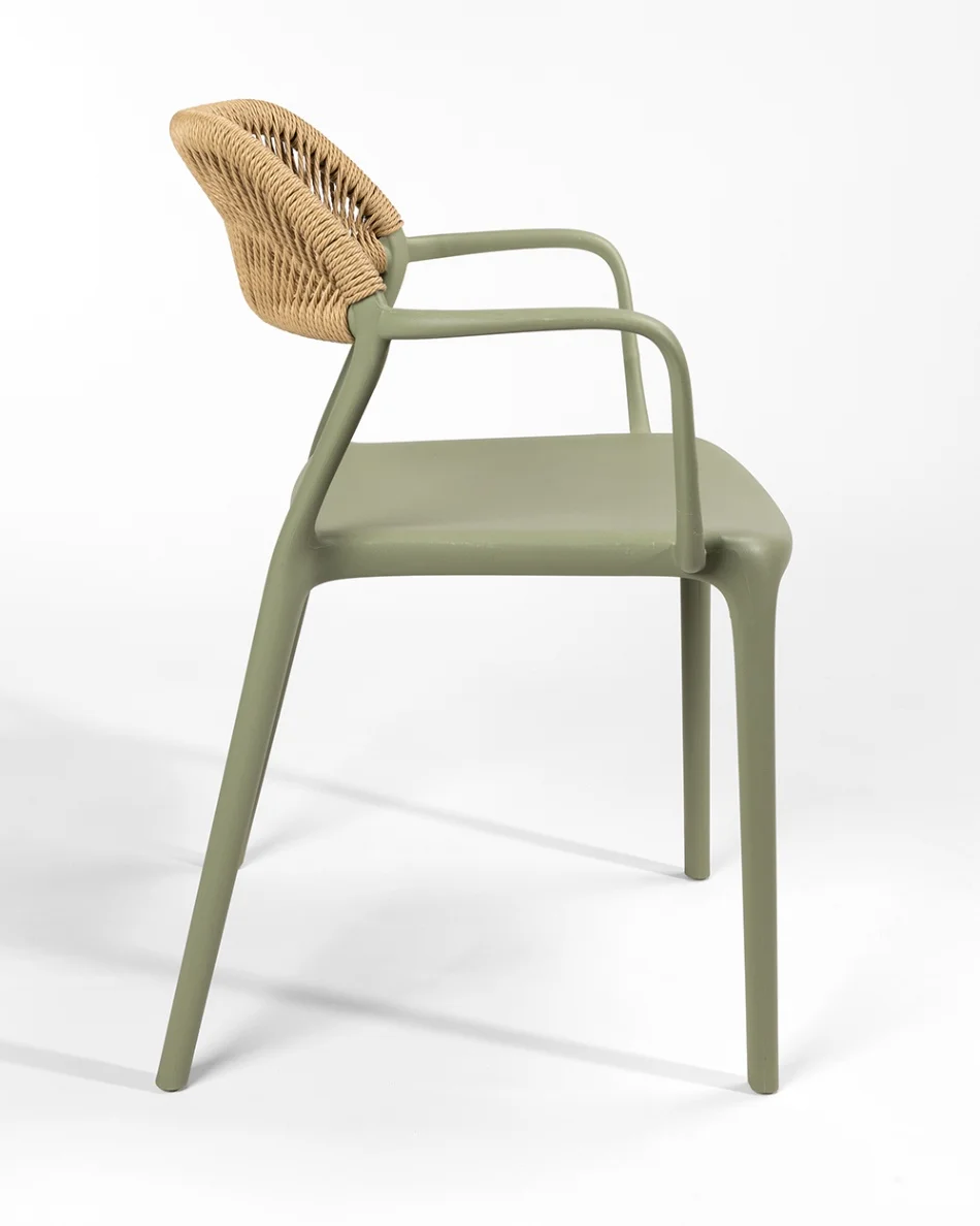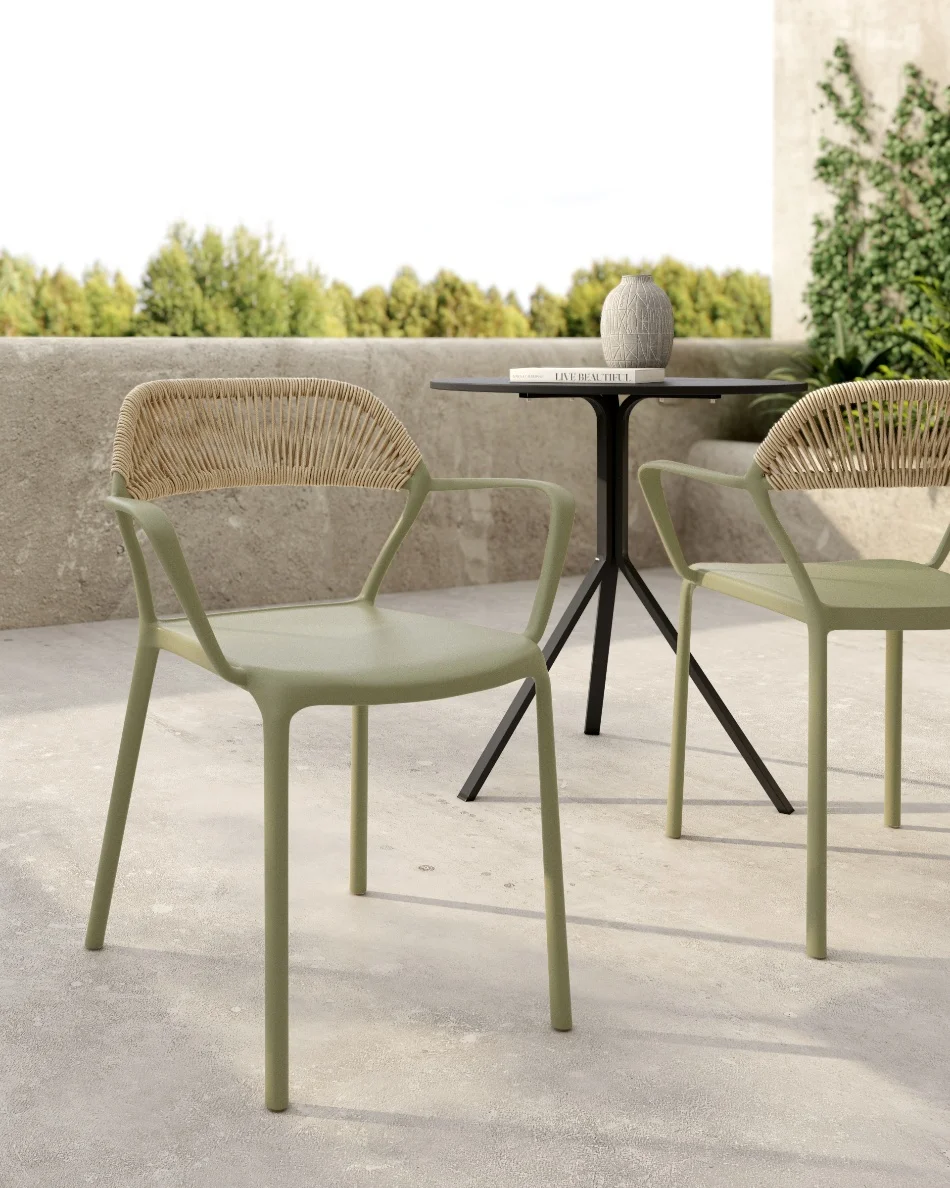 La silla Amalfi de la colección Essence es una pieza que combina diseño contemporáneo, funcionalidad y un sutil aire artesanal, ideal para crear espacios exteriores e interiores con personalidad. Su estructura está fabricada en polipropileno de alta calidad en color verde tiza, un tono suave y natural que aporta frescura y se integra fácilmente en terrazas, jardines, comedores o espacios. También esta disponible en varios colores.