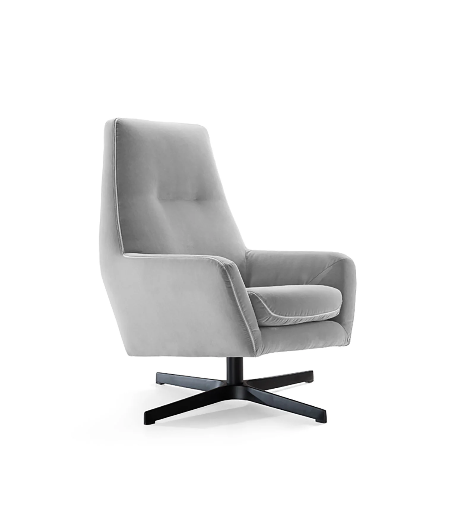 Además, ofrece distintas opciones de patas para ajustarse a tu estilo: patas de madera con estructura cruzada que aportan robustez y un aire cálido, o un pie giratorio en acero inyectado que añade un toque moderno y funcional.
