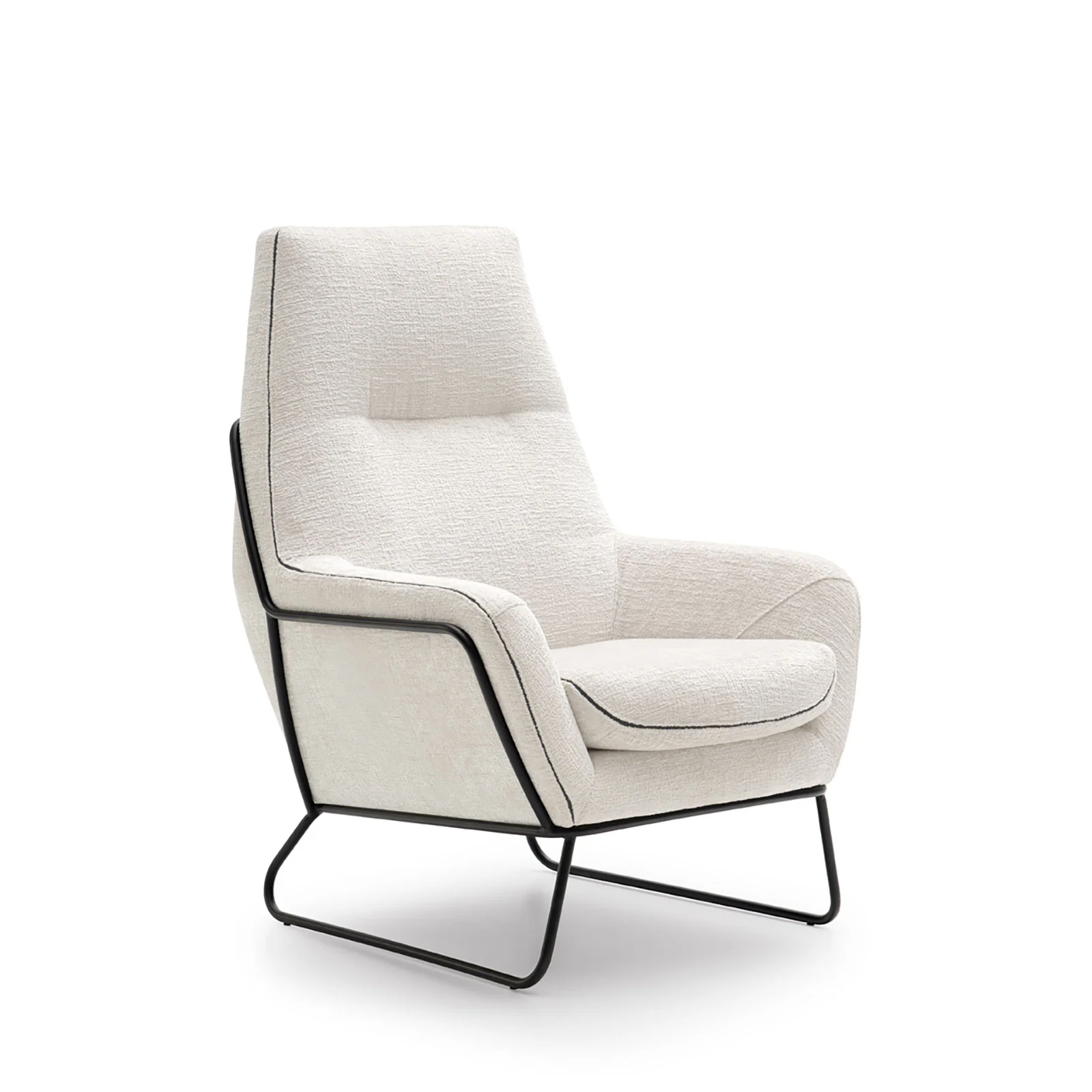 Uno de sus elementos más distintivos es el ribete bordado, un detalle exclusivo que realza su diseño y permite personalizar el sillón combinando el color del ribete con la tapicería elegida. Esta característica lo convierte en una opción versátil que se adapta a diferentes estilos decorativos y preferencias personales.